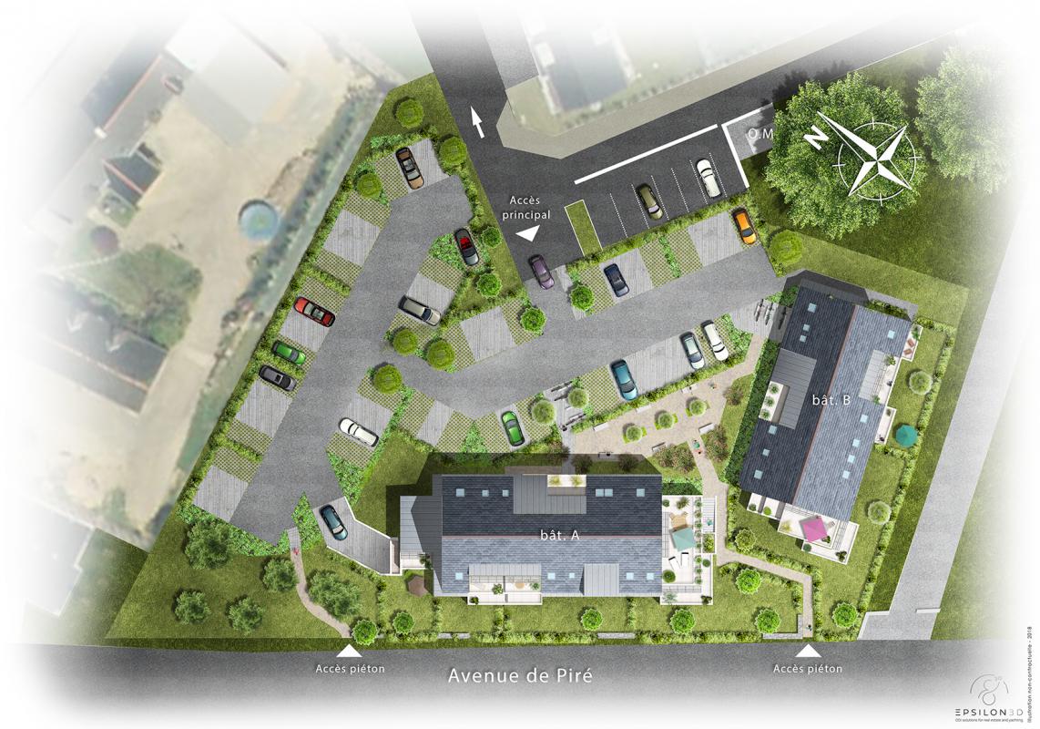 Située avenue de Piré, dans le quartier de la Perdriotais, la résidence comprend 2 bâtiments à taille humaine composés de 20 et 16 logements. Epurées et élégantes, les façades associent le blanc et le gris. Le résultat sobre et moderne leur permet de s’intégrer harmonieusement dans leur environnement. Chaque appartement se prolonge sur un jardin, un balcon ou une terrasse double exposition offrant ainsi une luminosité et une qualité de vie exceptionnelles. Les espaces verts entièrement aménagés et plantés ont été étudiés avec soin afin de créer une transition douce avec la nature toute proche. À Châteaugiron, vous avez le juste équilibre entre grand air et vie urbaine.